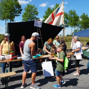 Eine Hüpfburg, das städtische Spielmobil und die Besteigung des Förderturms von Schacht 1, ein Kreativmarkt, Führungen durch die Maschinenzentrale, ein Stand der Pfadfinder mit Würstchen und Nackensteak, Eis und nicht zu vergessen das üppige Kuchenbüfett lockten viele Hunderte Menschen auf das Gelände. Die Jugendfeuerwehr Ahlen lies die Kinderherzen höherschlagen, denn die durften Löschübung an einem brennenden Haus unter fachkundiger Anleitung vornehmen.