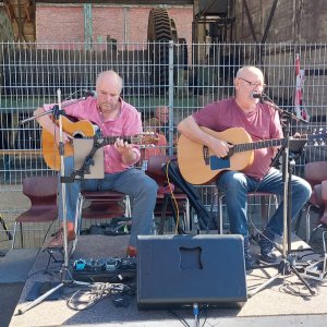 Musiklisch wurde das Fest stilgerecht von der Bergkapelle Ost über 2 Stunden begleitet, die zur Freude der vielen Besuchern zum Abschuss auch das Steigerlied spielten. Ab 16 Uhr übernahmen dann das Duo Frank und Martin das musikalische Programm und begeisterten mit Gitarrenmusik und Gesang, gespielt wurden beliebte und bekannte Coverversionen, von den Beatles bis hin zu Neil Young.