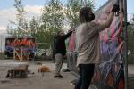 Für den Farbklecks des Tages sorgten die Sprayaktionen. Eigens dafür aufgestellte Wände wurden unter anderem vom bekannten Ahlener Sprayer Lemming, der der DZA ein weiteres Werk widmete, gestaltet.