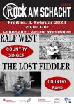 Die Livemusikreihe „Rock am Schacht“ bietet bei seiner Veranstaltung am Freitag, 03.02.2023 ab 20 Uhr in der Lohnhalle einen Abend voller Country-Musik. Die Rock-Initiative hat sich etwas Besonderes einfallen lassen und freut sich auf die stilechten Cowboystiefel – und Hüte, vermutlich nicht nur bei den Bands sondern auch bei einigen Besuchern. Den Start des Programms liefert der Countrysänger und Singer-Songwriter Ralf West, der mit vier in Nashville neu aufgenommenen Songs im Gepäck auftreten wird. Erstmals hat er dort auch deutschsprachige Songs aufgenommen, den Bahn-Reisebericht „Fahr doch endlich ein“ und das sehr bewegende „In meinem Herz“, dass eine traurige Phase seines Lebens beschreibt. Aber auch gute Laune ist garantiert mit „She said yes“ und „Loud Guitars in Honky Tonk Bars“. Ralf West spielt daneben auch Songs von seinem Album „I long for Summer“, dazu auch neuere Songs mit deutschen Texten. Die 2014 gegründete Country-Band "The Lost Fiddler" mit Ihren 5 Musikern um Andi Reitzki besticht durch Ihre Leidenschaft zur Countrymusik. Die vielstimmige Band bringt die verschiedenen Stilrichtungen der amerikanischen Country Music mit Begeisterung auf die Bühne.