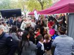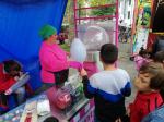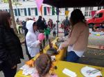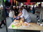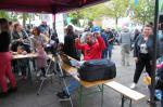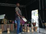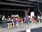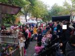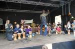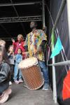 Und das taten dann die Kinder auch sehr lautstark unter der Leitung von Mamador Ben Diop aus Essen und sein Kollege Faro Diouf aus Köln. Sie zeigten den begeisterten Zuschauern, was auf afrikanischen Trommeln alles möglich ist. Ein gelungener Weltkindertag auf dem Glückaufplatz nahm seinen Lauf, denn der Platz war gefüllt mit Menschen aus dem Stadtteil, die sichtlich Spaß an der Veranstaltung hatten. Da wurde geschminkt und gebastelt, leckere Waffeln, selbst gebackene Kuchen und vieles mehr warteten darauf, verspeist zu werden. Auch Zuckerwatte verkürzte die Zeit bis zum Beginn des Kasperle-Theaters. Auch das Spielmobil mit seinem Bewegungs- und Spielangebot begeisterte die Kinder. Celine Vogt vom Stadtteilbüro brachte mit ihrer Ballonkunst die Kinderaugen zum Leuchten. Die Schlange nahm ebenso wie vor der Zuckerbude kein Ende, so dass sie von Jürgen Koch, der "guten Seele" und Haustechniker vom JuK Haus unterstützt wurde.