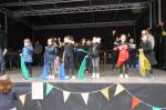 Zum Anfang gratulierte Gudrun Alteheld, Geschäftsführerin im Bereich Pädagogik vom evangelischen Kirchenkreis Hamm, die Jubilare. „Ich war selbst bei der Gründung der Kita dabei und habe sie auch geleitet“, erinnerte sie die Ahlenerin und übergab das Mikrofon an Pfarrer Markus Möhl, Mitbegründer und Vorsitzender des Lunch Clubs. Dieser gab dann gemeinsam mit den Kindern ein Geburtstagsständchen zum Besten. Als erstes präsentierten sich die Schülerinnen und Schüler der Klasse 2a der Diesterwegschule und brachten einen einfühlsamen Tüchertanz auf die Bühne. Danach hieß es Trommeln für die Kinderrechte.