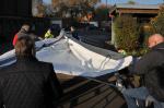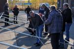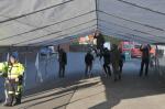 Knapp 20 Mann vom Bergbautraditionsverein der ehemaligen Zeche Westfalen standen parat, als es hieß das große neue Zelt zur Probe aufzubauen. Wie sich herausstellte wurden auch einige Hände gebraucht um den 6 x 12 Meter großen Bau zusammenzustecken, zu verschrauben und vor allem samt der aufgezogenen Plane „auf die Beine“ zu stellen. Um eine Vorstellung zu kriegen wurde zum Schluss noch probehalber eine der Seitenwände verbaut – diese zeichnen sich dadurch aus, das sie nicht komplett sondern in einzelnen Segmenten angebracht werden können, was den Aufbau flexibler gestaltet.