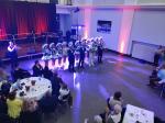 Die Vorhelmer „Hellbach-Nixen“ brachten anschließend den Saal zum Brodeln. Die elf jungen Damen beeindruckten die Gäste mit ihren Showtänzen voller akrobatischer Leistungen in einem atemberaubenden Tempo. Prinz Ossi I. bat Anne Althaus vor die Bühne und überreichte ihr Präsente und den obligatorischen Orden als Dank für ihre engagierte Arbeit. In diesem Zusammenhang erinnerte Teamleiter Simon Büscher an zahlreiche Angebote für Senioren über das Sinn-Netzwerk.